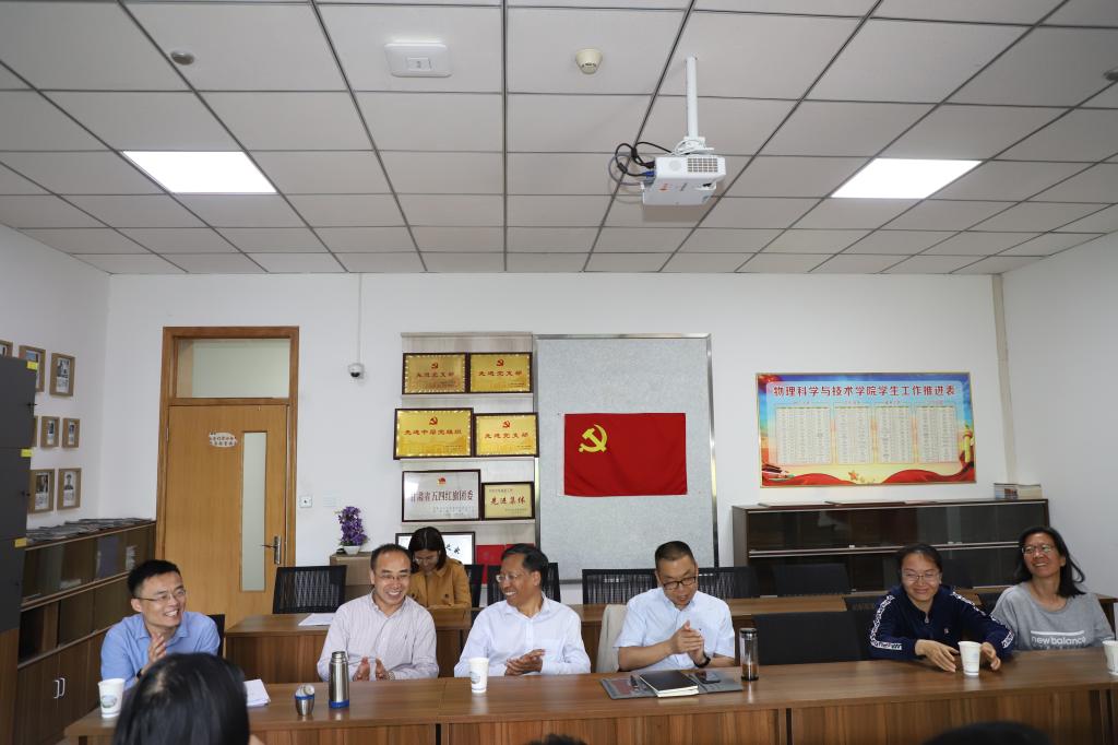 4月27日上午,物理科学与技术学院教工第五党支部在格致楼4018会议室召开党员大会,讨论接收刘斌老师为中国共产党预备党员,并邀请高美珍教授、王育华教授讲党课。物理科学与技术公司党委吴国军书记全程参加支部党员大会并讲话。