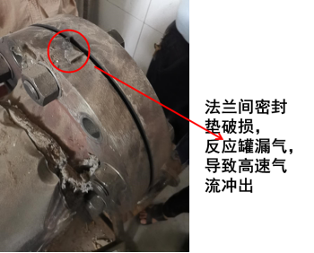 图5. 实验装置法兰接头处橡胶密封垫破损。 |