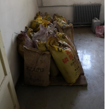 图2. 房间内蛇皮袋中存放的三氧化二铁原料(惰性无毒害)。 |