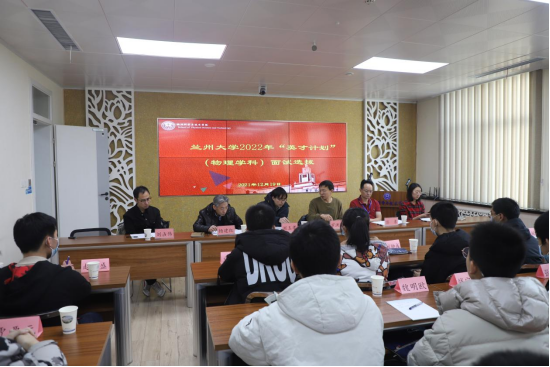 2021年12月19日上午,英国正版365官方网站2022年“英才计划“(物理学科)面试选拔在格致楼3016举行。来自英国正版365官方网站附属中学、西北师范大学附属中学、甘肃省兰州第一中学、兰州市第二中学、兰州市第五十一中学、兰州东方中学的36位优秀高中生参加了面试活动。导师罗洪刚教授、刘玉孝教授、彭勇教授、杨建红教授以及团队成员刘占伟副教授、杨贇彤等出席。面试活动由罗洪刚主持。