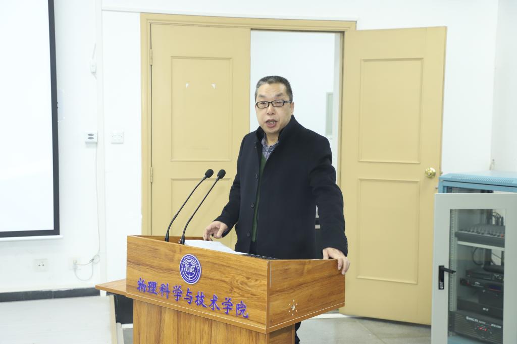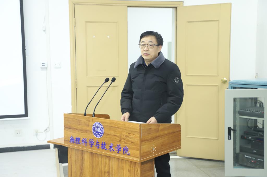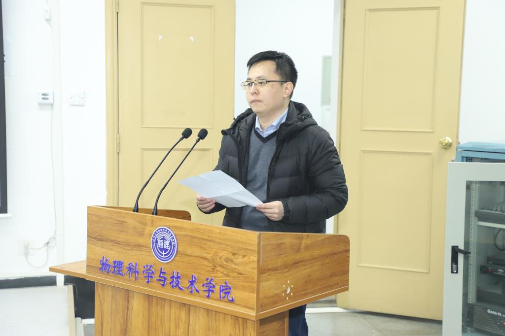 2月19日,物理科学与技术学院在格致楼1001报告厅举行了全院教职工大会。公司党委组织部部长张继革、干部科科长李玉夏、学院新老班子成员、全院教职工参加了会议,会议由党委书记吴国军主持。