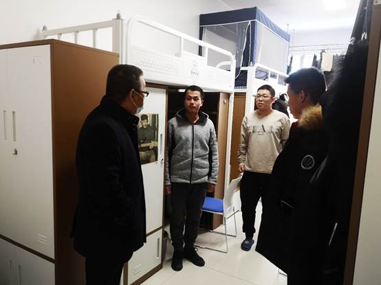 2月20日上午,公司党委书记吴国军、副书记王岩在学工人员陪同下深入员工宿舍走访,关心慰问已返校员工,提醒员工养成良好生活作息规律,鼓励员工新学期做好学习计划,积极参与体育运动,注意保持宿舍卫生,增强疫情防控常态化的意识。