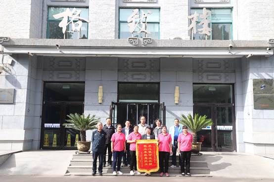 4月28日下午,公司党委书记吴国军、经理刘翔、副经理李星波代表学院向所在物业工作人员赠送了一面“尽心值守战疫情 敬业奉献勇担当”的锦旗,并与公司业务主管经理白玉莲、项目部门经理邱晓玲及格致楼物业工作人员进行了交流。