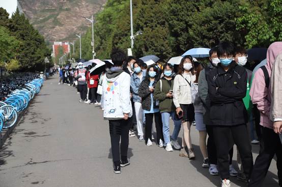 “五一小长假”期间,乘校车出行的同学数量剧增,从体育馆一直延伸达近百米的长队成为节假日兰大校园里独有的风景。为组织同学们文明有序乘车、减少等待时间,同协助后勤部门做好疫情防控和秩序维护工作,5月1日至3日,物理科学与技术学院组织青年志愿者开展了“五一文明乘车”志愿服务活动。