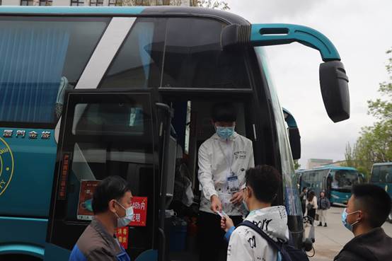 早上八点,志愿者们身着统一服装,在校车调度室和学院老师们的组织协调下到各自的服务点就位。志愿者们分工明确,有的负责维持秩序清点人数,有的负责引导乘车协助刷卡,有的负责提供口罩手部消毒,机动小分队负责解答同学遇到的各种疑问并提供帮助。乘车的同学中不乏忘记携带校园卡或校园卡余额不足的,志愿者们也都一一给予帮助解决。