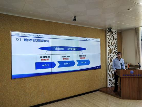 公司副经理刘玉孝作了研究生人才培养思考与展望的专题报告,他介绍了学院近些年研究生招生相关数据及生源现状,从吸引生源、培养过程、培养效率三个方面提出了具体改革思路和发展举措,提出了招生宣传基地和宣传渠道建议,说明了研究生招生名额分配办法。他解读了公司产品的关键环节和计划进度,分析了研究生毕业相关数据和有关问题,从“质量”、“疏导”、“信誉”三个关键词解读了提升公司产品效率的具体对策。