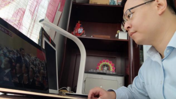 党员代表在城关校区西区格致楼1001报告厅观看开幕会
