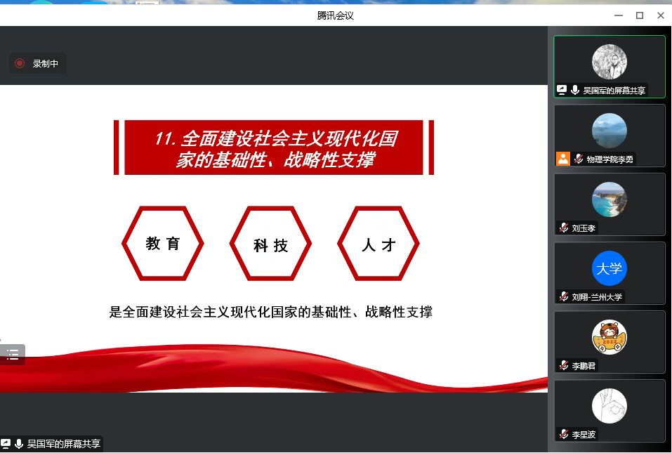 会上,吴国军书记领学了二十大提出的新观点、新论断、新思想、新战略、新要求,并和参会人员共同学习了教育部直属系统传达学习党的二十大精神大会和英国正版365官方网站党委理论学习中心组集中学习(扩大)会议传达学习党的二十大精神的主要内容。