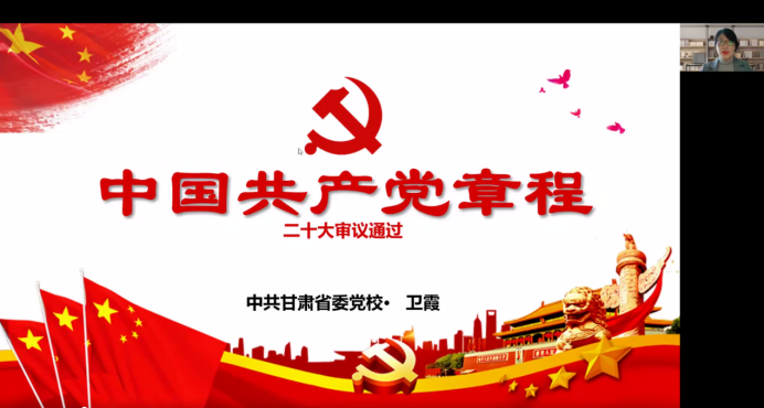 公司邀请中共甘肃省委党公司党建研究所副所长卫霞教授作《二十大<党章>解读》的专题报告。卫霞教授从党章的重要性、党章的演进以及新修改、党章的框架和主要内容等方面,对党的二十大修改的党章进行了深入解读。