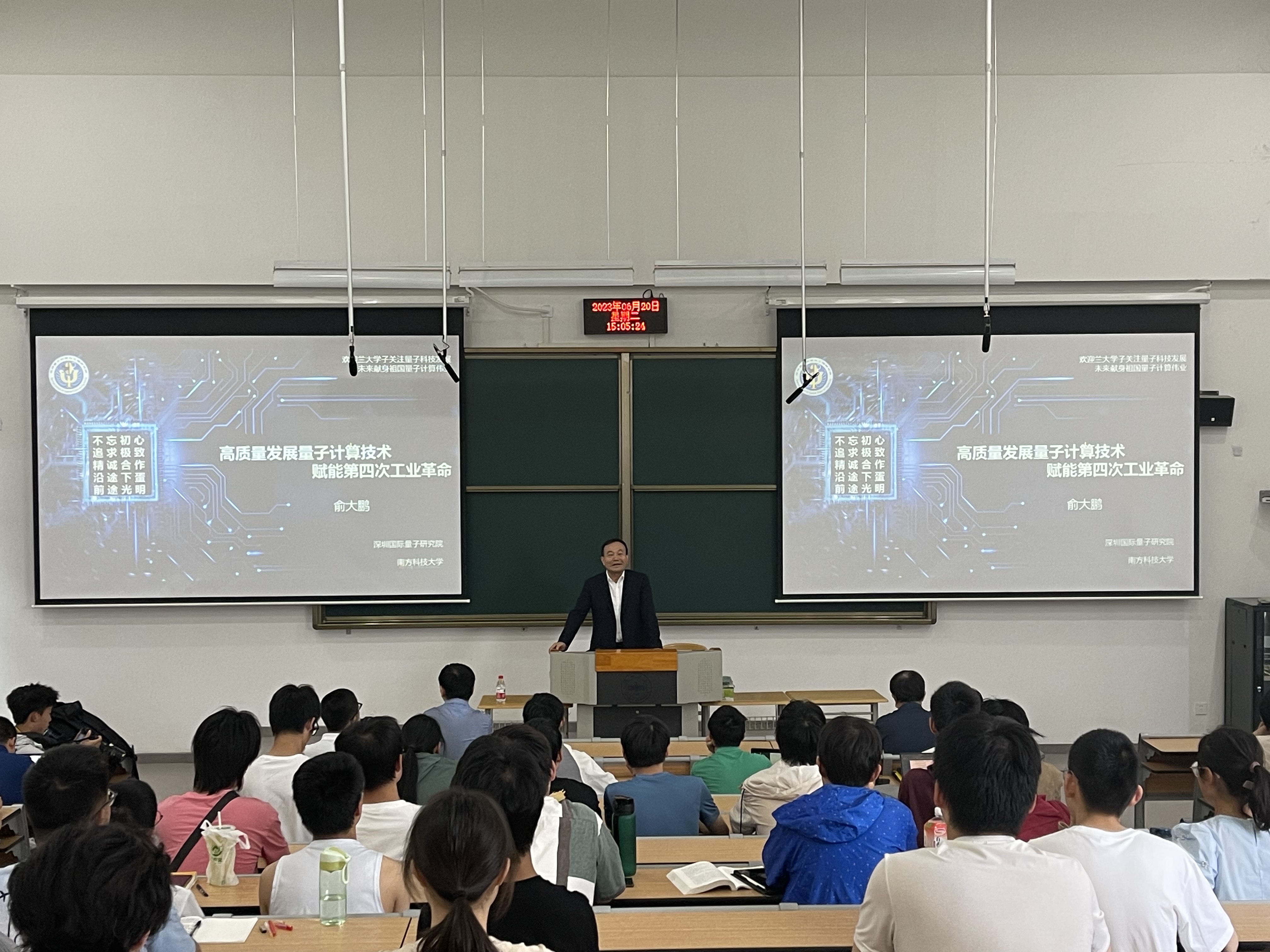 当日下午,俞大鹏院士专程赴榆中校区为本科生做了《量子计算为第四次工业革命提供颠覆性算力》的报告,该报告对我国量子计算的发展现状、面临的挑战与机遇进行全面的分析,阐述了我国在量子计算领域的研究基础和优势,介绍深圳国际量子研究院发展现状尤其是近几年取得的若干重大研究进展等,与在座师生进行了互动交流。