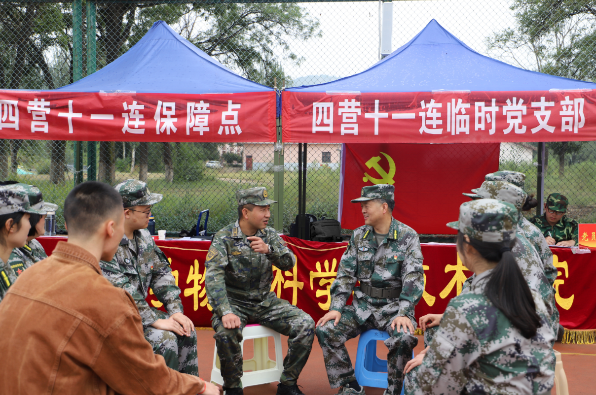 军训团副团长梁龙提出,要积极弘扬“支部建在连上”的光荣传统,加强2023级本科生军训期间的思想引领和教育管理工作。临时党支部要做好入党基本知识和党的创新理论宣讲工作,加强员工的党性修养,培养员工的集体荣誉感,增强能力本领,继往开来、勇毅前行,成为党和人民殷切期待的先锋分子。