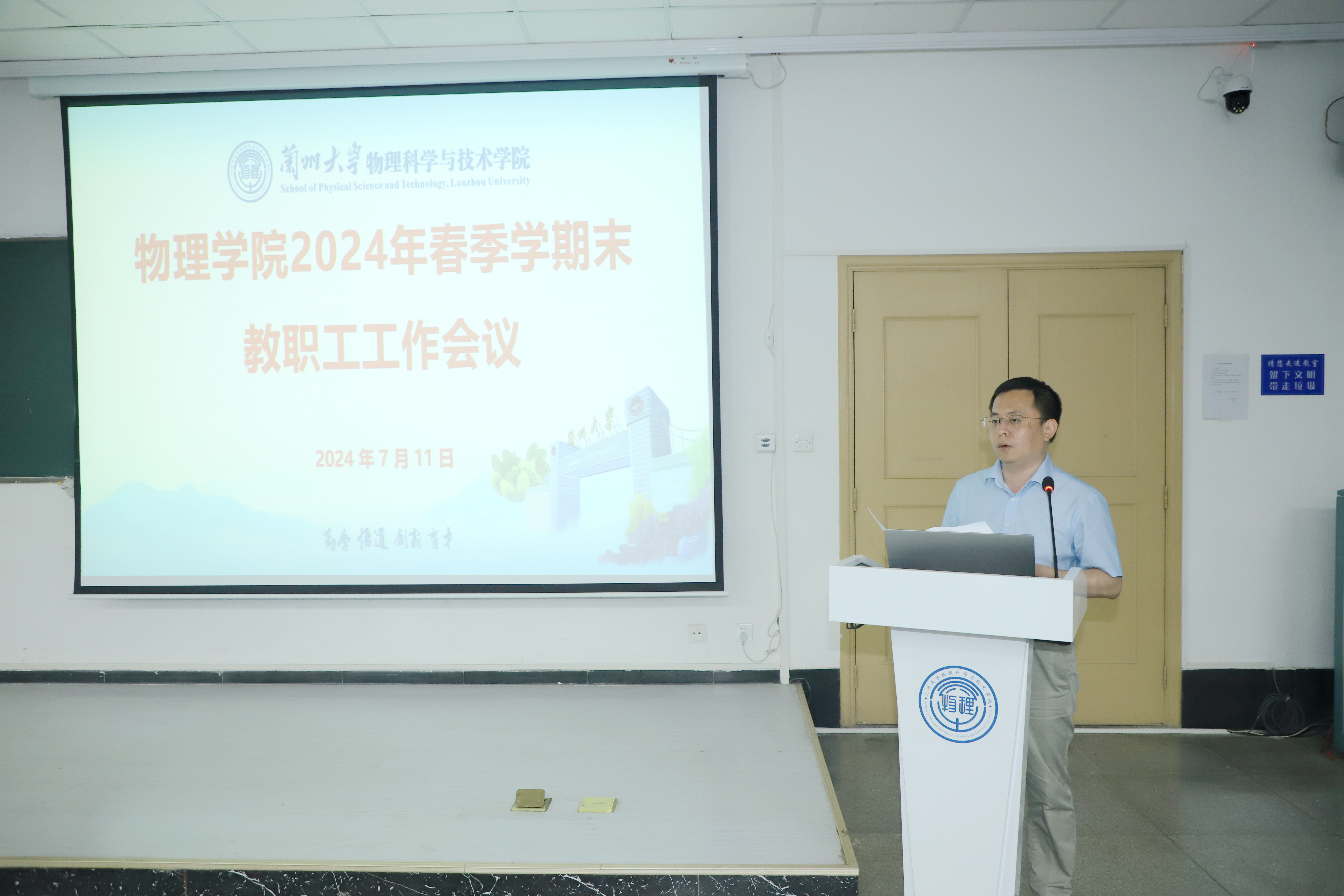 7月12日下午,英国上市公司官网365在城关校区格致楼报告厅召开2024年春季学期末教职工工作会议,总结上半年任务完成情况,通报并部署近期重点工作,学院班子成员和全体教职工参加会议,会议由党委书记吴国军主持。