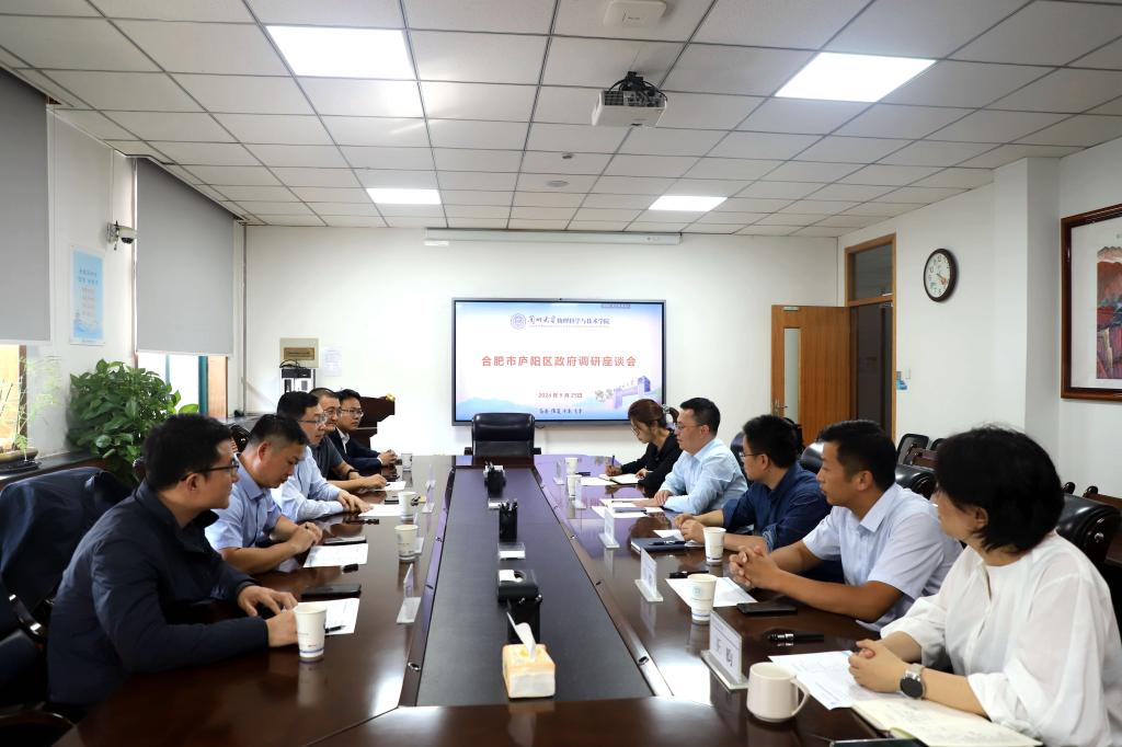 刘翔对合肥市庐阳区政府一行的来访表示欢迎。他指出,近年来,学院秉持“勤学、悟道、创新、育才”的院训,着力构建优势和特色的学科体系,走“多边合作、资源共享、共同受益”之路,助推学院的高质量发展。他希望以此次座谈为起点,加强双方在科学研究和人才培养、就业等方面的合作。