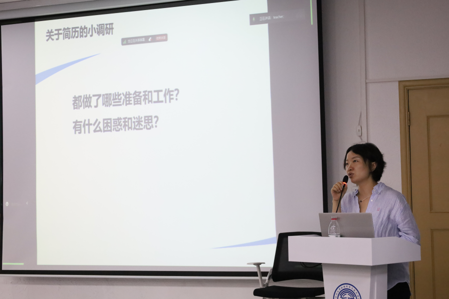 研究生辅导员王昀围绕如何通过简历展示自己以及如何在求职过程中进行自我评价做出了详细的讲解,并就此和同学们开展了交流互动,对同学们关心的求职和简历问题进行了详细的解答,最后对学院拟开展的就业指导活动进行了预告。