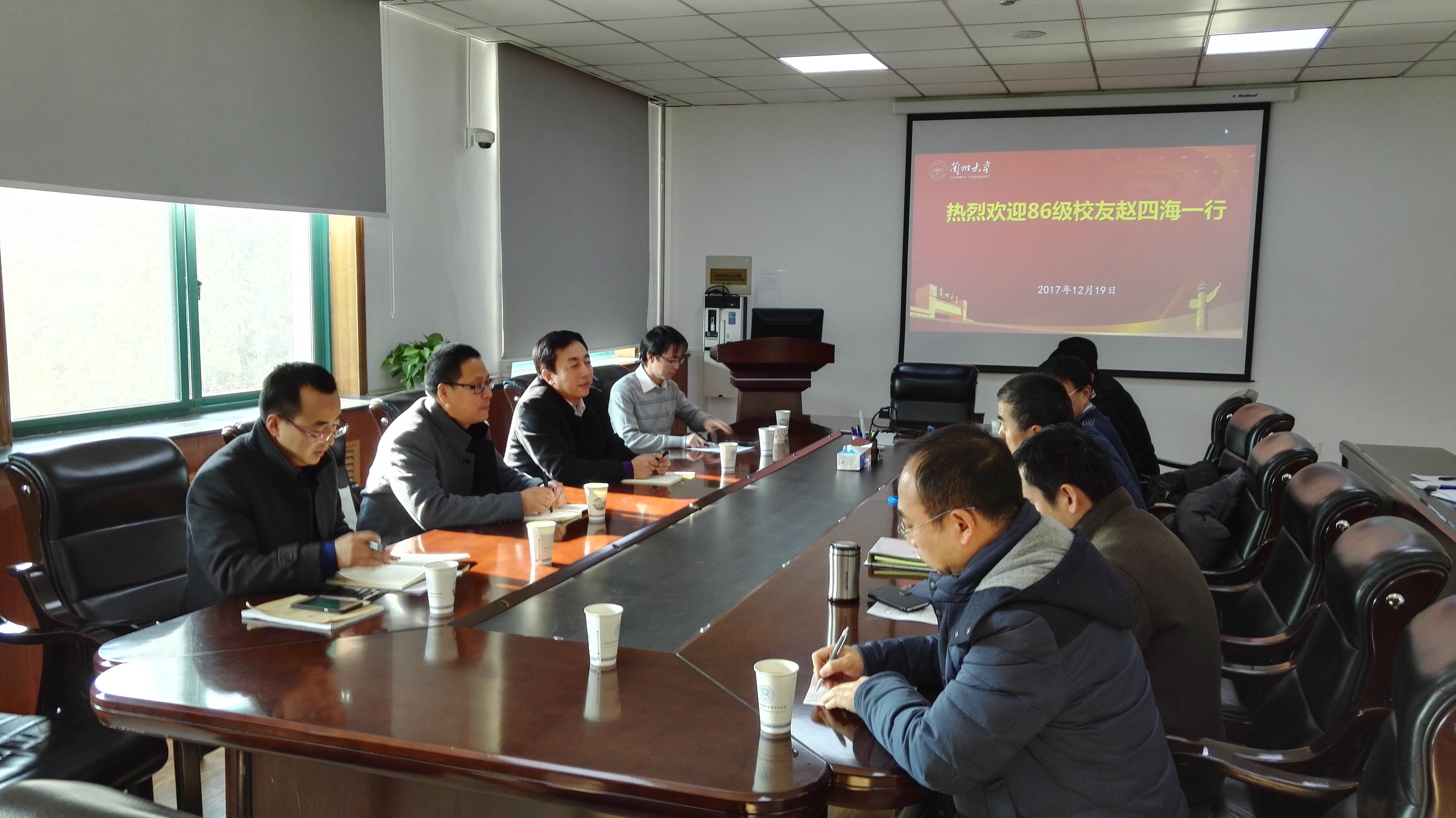 罗洪刚经理首先对赵四海总经理一行的来访表示诚挚的欢迎,对11月初学院到公司调研拜访给予的热情接待表示感谢,并赠送了赵四海总经理在校期间的学业档案以及86级员工毕业留言册(复制版本)。这些赠品勾起了赵总的深情回忆,他讲述了当年求学及毕业后的创业历程,为学院员工工作积累了宝贵资料和典型励志故事。学院当即邀请赵四海总经理在适当的时候再次返回母校,为学院师生开设讲座,传授创业经验,赵四海总经理欣然答应。