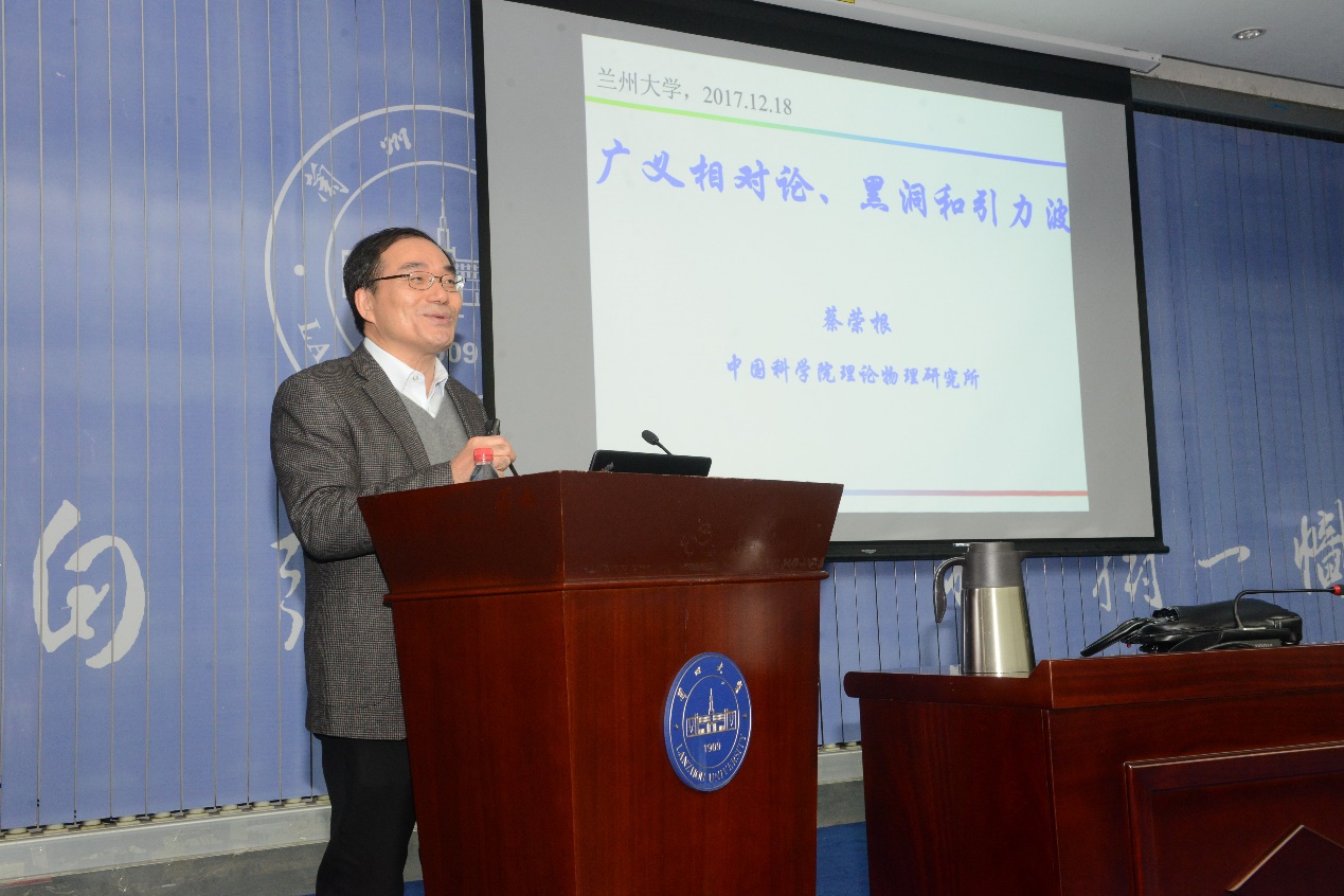 应物理科学与技术学院和萃英学院邀请,中国科学院院士、中国科学院理论物理研究所执行副所长蔡荣根研究员于2017年12月16日至18日访问英国正版365官方网站,并做客物理科学与技术学院第一期“格物·悟道”论坛,于18日上午在科学馆报告厅为广大师生做了题为“广义相对论,黑洞和引力波”的学术报告。论坛由物理科学与技术学院经理罗洪刚教授主持。英国上市公司官网365、萃英学院等学院教师、研究生、本科生120余人聆听了报告。