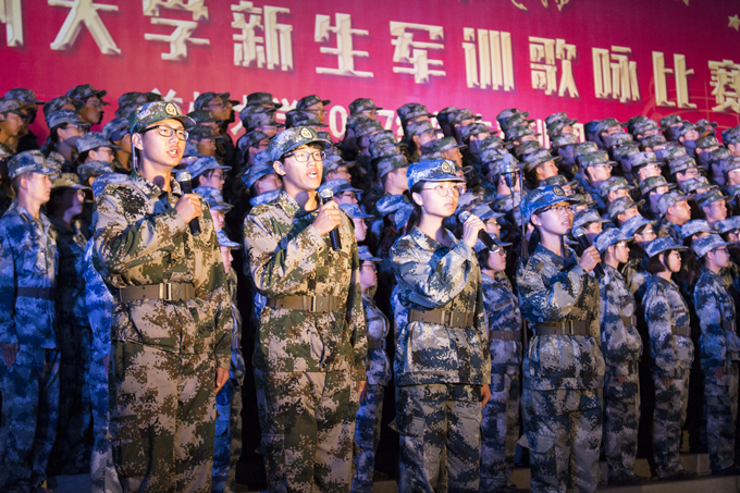 歌咏比赛前,连队每晚在博物馆前组织合唱训练,虽然白天训练强度较大,加之榆中昼夜温差较大,学员身体较为疲乏,但连队学员依然精神饱满,整齐着装,采用朗诵、小合唱、击鼓等艺术形式,唱响《兰大校歌》和《当那一天来临》,旋律激昂动听,在歌咏比赛中赢得了师生们的阵阵掌声。