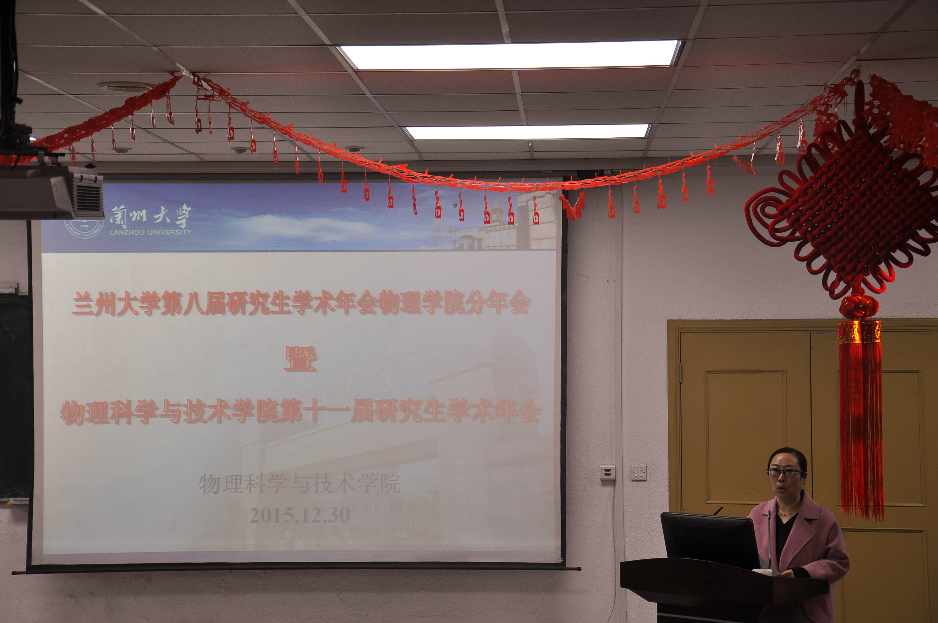 英国正版365官方网站第八届研究生学术年会暨物理科学与技术学院第十一届研究生学术年会于2015年12月30日,在格致楼1001报告厅隆重举行,学院经理薛德胜教授、党委书记石兆俊、党委副书记李鹏君、来自四个学科点的十位评委老师和研究生辅导员参加了开幕式。