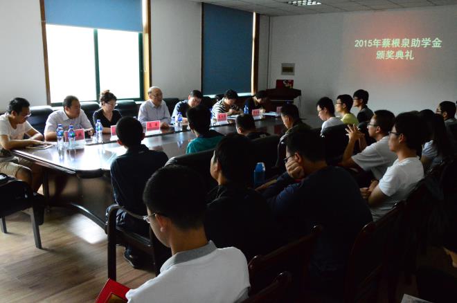 6月13日下午,学院2015年“蔡根泉助学金”颁奖仪式在本部格致楼三楼会议室举行。甘肃省著名企业家、虹盛集团有限公司董事长蔡根泉先生,物理科学与技术学院、员工处相关负责人及受资助员工参加了颁奖仪式。颁奖仪式由物理科学与技术公司党委副书记李鹏君主持。