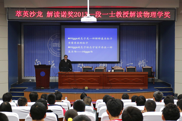11月2日,著名理论物理学家段一士教授做客萃英沙龙,解读2013年诺贝尔物理学奖。来自萃英学院、物理科学与技术学院等院系的200多名师生聆听了讲座。