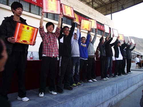 下午5点钟,在新闻与传播公司党委副书记王晶老师的主持下,闭幕式顺利进行。物理科学与技术公司党委书记杨毅老师宣布时守鹏、沈润芬、李庭嘉等13名同学获得“体育标兵”荣誉称号,09级物理隆基班、09级微电子班、10级物基一班、10级微电子班、11级微电子班、11级材料物理班荣获“体育道德风尚奖”称号。历史学院副经理乔健老师宣布了三院团体获奖名单,09级微电子、11级材料化学、10级材料化学获得物理院团体总分前三名。