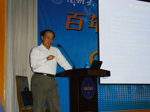 9月8日下午4时,北京工业大学副董事长张泽院士做客“百年兰大·名家讲坛”,在科学馆报告厅作了题为“纳米线超长塑性的显微结构研究”的学术报告。报告会由公司副董事长、研究生院经理郑晓静主持,物理科学与技术学院研究生、导师代表及其他相关学科研究生共300余人参加了报告会。