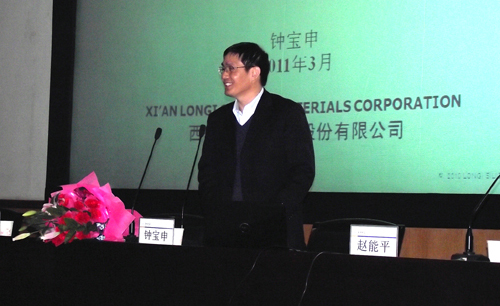 3月25日晚,公司物理系86级员工、辽宁抚顺隆基磁电设备有限公司董事长、西安隆基硅材料股份有限公司总经理钟宝申先生应邀在天山堂C302为物理科学与技术学院的同学作了专题报告会。抚顺隆基磁电设备有限公司副总经理、公司86级员工赵能平,物理科学与技术公司党委副书记王斌出席了本次报告会。报告会由物理科学与技术学院副经理谢二庆教授主持。