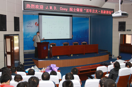 5月14日,爱尔兰皇家科学院院士J.M.D.Coey教授一行应邀来公司访问。当日下午,Coey教授参观了学院的实验室,并做客“百年兰大?名家讲坛”。在题目为“Dilute Ferromagnetic Oxides - Fact or Fantasy?”的报告中,Coey教授首先总结了近几年稀磁氧化物的研究成果,从中直接提出了这些磁性半导体与通常铁磁体行为的不同。并通过详尽的数据分析,提出了描述稀磁氧化物的3种模型,并总结提出Dilute Ferromagnetic Oxides到目前为止还只是Fantasy。在题目为“magnetism big picture”的报告中,Coey教授从宇宙大爆炸开始到近代物理学的发展,又到目前磁学发展的研究前沿,首先讨论了人类对磁现象的逐步认识过程,介绍了中国古人对磁学认识发展起到的重要作用。并结合物理学史上著名的实验,介绍了近代著名物理学家的研究成果。最后介绍了当今磁学具有的广阔研究领域以及未来磁学的发展方向。