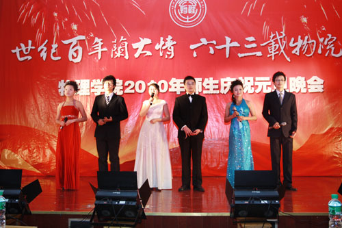 晚会在开场舞《开门红》中拉开帷幕,今年恰逢物理系成立六十三周年,本次晚会演员包含了研究生,本科生,自考生和学院教工。不平凡的2009年即将过去,我们载歌载舞,迎接新的一年。