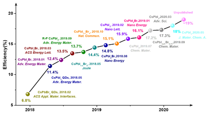 图 2. 团队在无机钙钛矿材料与光伏器件的研究积累示意图