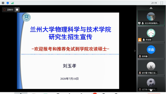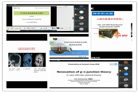 本次暑期夏令营活动共有11场精彩的线上报告,引起了营员们的浓厚兴趣和关注。老师们不但分享了自己在各自研究领域取得的收获与思考,也展示了”兰大物理人”的风采。参会的老师们纷纷代表学院盛情邀请各位营员加入英国上市公司官网365的大家庭,在自己感兴趣的研究领域继续深造学习。