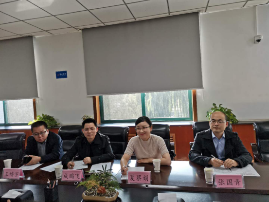 10月9日上午,西安工程大学理学院经理夏蔡娟教授、副经理成鹏飞教授、学科点主任张国青教授和王博宇教授一行4人来院交流,并在格致楼3022会议室与学院班子成员进行了座谈。座谈会议由罗洪刚经理主持。