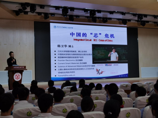 在四所中学韩卫华教授分别面向部分高一高二员工做了题为“中国的‘芯’危机”的科普报告。韩教授深入浅出的通过讲述美国对我国高端芯片企业的制裁,讲解了芯片的设计制造流程并指出了中国企业目前在设计和制造方面面临的的困境和危机,鼓励同学们能够抓住机遇、奋力拼搏,努力学习为国家和民族的崛起贡献力量,受到各中学同学和老师们的热情欢迎,报告结束后的咨询和交流也十分热烈。