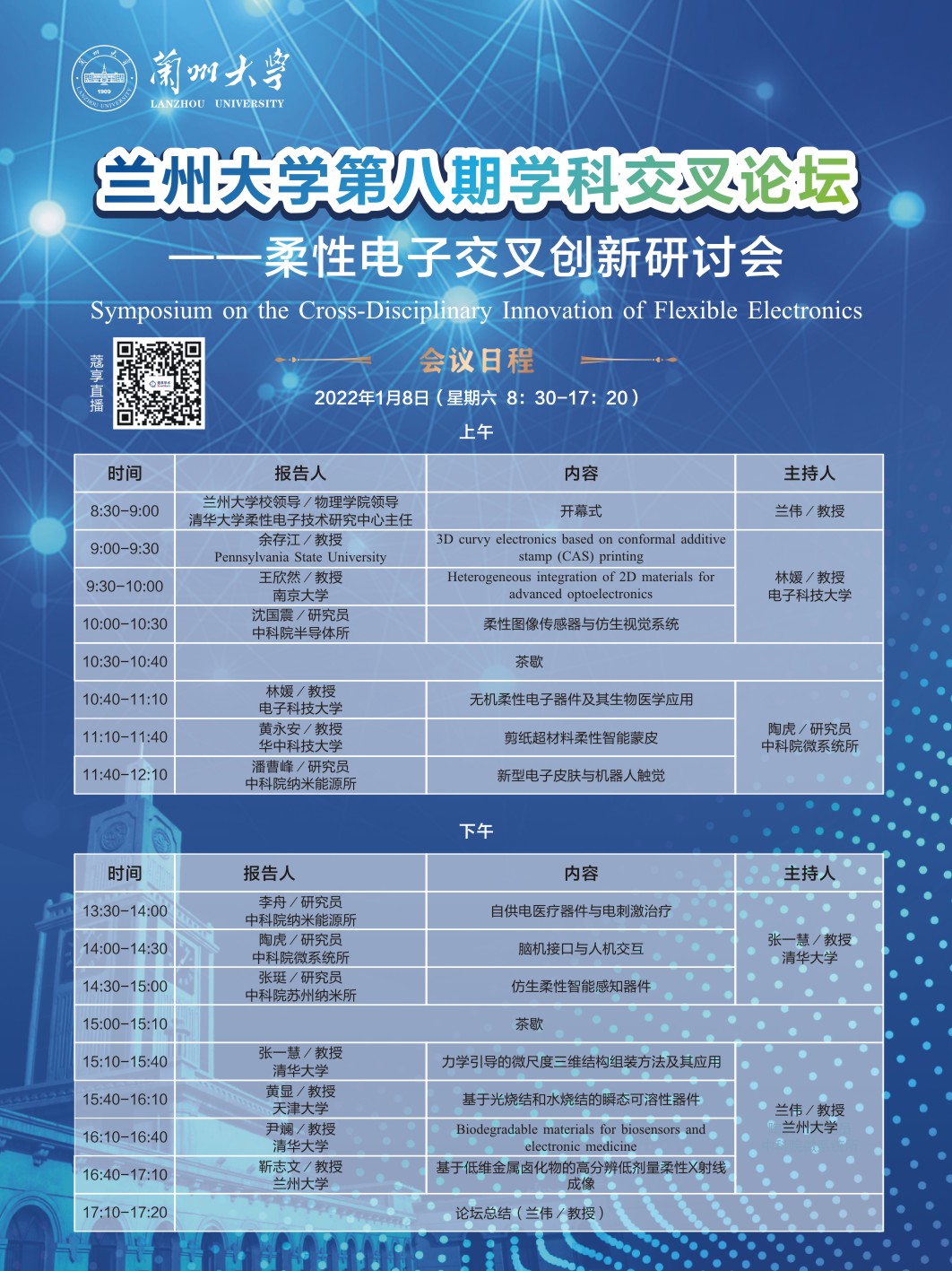 由英国正版365官方网站主办的第八期学科交叉论坛——“柔性电子交叉创新研讨会”国际学术论坛将于2022年1月8日以线上形式举办。本次论坛邀请了海内外14位知名专家学者,将围绕柔性电子学相关的新原理、新材料、新器件、新技术与新应用等热点主题开展交流与研讨,推动柔性电子领域的学术交流与合作,提升创新能力,为创新型国家建设作出积极贡献。