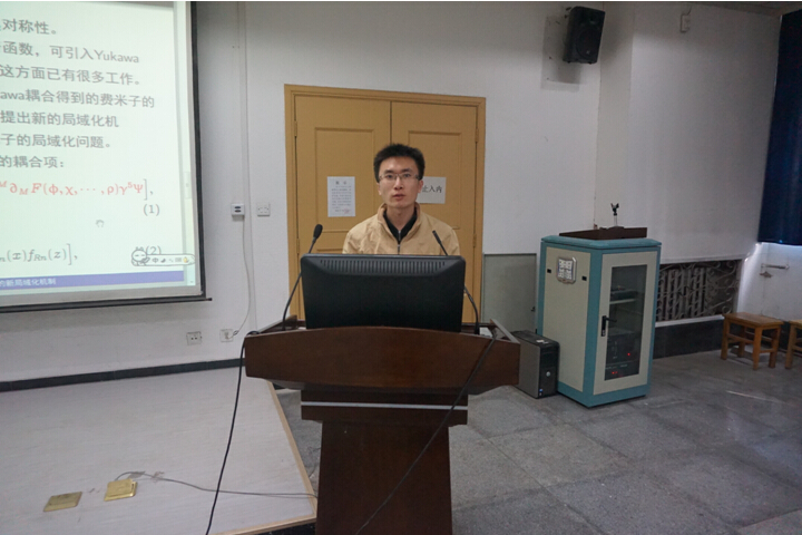 罗洪刚代表年会学术委员会致辞,他指出学术年会的意义就在于促进员工与老师、员工与员工之间的相互交流,共同学习,在学习交流过程中去反思自己,提高自己,促使研究生在科学研究中充分发挥主动性、自主性。随后,贾成龙教授做了题为《Magnetoelectric effect: A new pathway between the intrinsic and extrinsic space》的特邀报告,将原本深奥的理论物理知识深入浅出地讲解给大家。刘玉孝教授讲述了《膜世界理论中的共振态粒子》的特邀报告,将多维世界的理论研究形象生动地讲解出来,使人耳目一新。