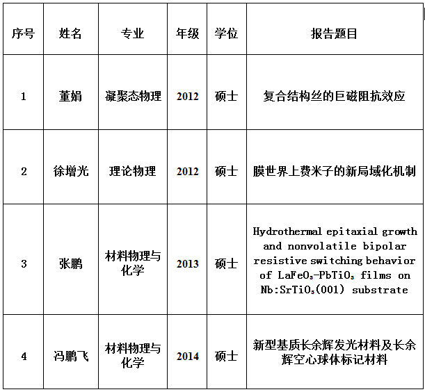 物理科学与技术学院第十三期研究生学术沙龙