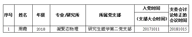 公司研究生磁学第二党支部于2018年10月15日召开支委会议,讨论本支部预备党员的按期转正问题,现对预备党员按期转正进行公示。