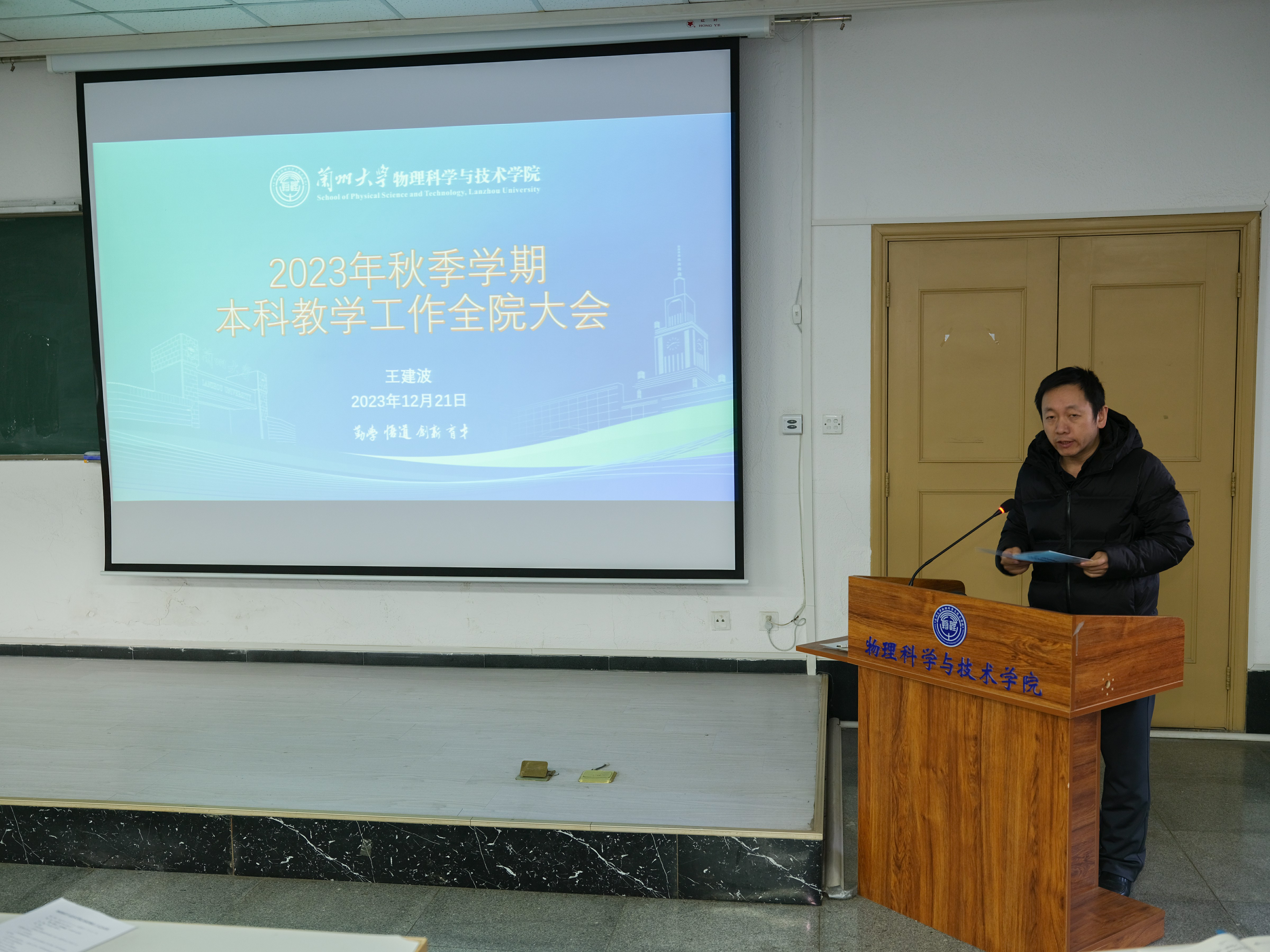 会上,王建波首先就听评课工作、期末考试、下学期课程安排、指导本科生毕业论文、2023版本科生人才培养方案落地、“十四五”规划教材建设、第四届教师教学创新大赛等近期本科教学工作进行部署,并对教学成果奖申报、一流课程建设、教学团队管理、创新创业教育、指导本科生竞赛及论文等本科教学今后重点努力方向逐一说明;随后介绍了学院目前迎评工作进度:自学院迎评工作开展以来,学院严格落实各项工作要求,仔细对照评估指标已经形成自评报告及相关支撑材料初稿,但目前学院迎评工作仍存在一些问题,希望通过此次会议召集全体教职工专题讨论,形成“人人关心评估、人人了解评估、人人参与评估”的良好工作氛围和工作机制,推动本科公司产品高质量发展。