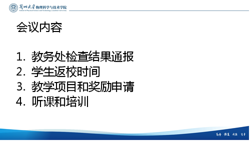王建波介绍了本学期以来各类校级、省级相关教学项目、课程项目的申报情况,请教研室提前谋划、做好今后的申报工作,希望各位教研室主任、副主任进一步深入思考,不断创新和落实。会议的最后,王建波详细解答了员工返校时间、本科毕业论文等目前学院师生非常关注的热点问题。