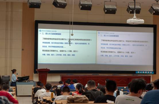 李玉琼先就2021春季学期考试成绩进行了详细分析,鼓励学业较落后的同学要认真分析原因、总结经验教训、及时弥补不足,在新的学期将更多的精力投入到学习中。随着2019级同学已经进入三年级,根据老员工学涯发展阶段,李玉琼指出此阶段是同学们继续设定目标、接受现实考验的重要时期。她希望同学们进行专业对口和相关职业信息探索,根据个人兴趣、性格、能力设定生涯目标、进行职涯探索,并介绍了学院近三年本科生升学和就业情况,引导同学们树立正确的择业就业观。