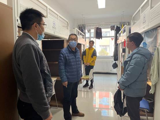 10月28日上午,公司党委书记吴国军在党委副书记王岩等学院员工工作组成员陪同下深入榆中校区本科生宿舍进行走访慰问,并检查学院榆中校区疫情防控工作和员工线上学习情况。