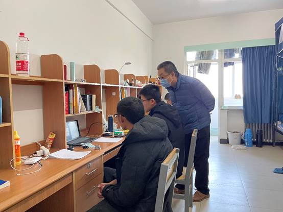 按照疫情防控要求,榆中校区目前实行封闭管理,教学活动全部转到线上进行。走访过程中,吴国军与同学们亲切交流,了解员工近期学习生活,并仔细检查员工线上学习情况,督促同学们自觉养成良好的学习习惯,保质保量上好“云端”课程、完成学习任务;叮嘱同学们做好个人卫生,共同打造清洁、舒适的宿舍环境,学习生活中遇到困难及时向任课老师、教学秘书和辅导员反馈;督促同学们做好个人防护并配合学校、学院做好各项疫情防控工作,在学业之余积极开展体育运动,保证身心健康。