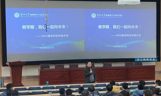 2月24日下午,学院在天山堂C301报告厅召开2021级本科生年级大会暨学风建设大会。副经理王建波、教学秘书焦巧会、兼职辅导员郭文君以及2021级全体本科生参加大会,大会由2021级辅导员樊金雷主持。