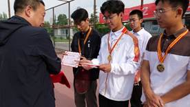 公司2020级本科生舒琪、王登彪获评“优秀运动员”,体育教研部党总支书记雷寂为优秀运动员颁发荣誉证书。