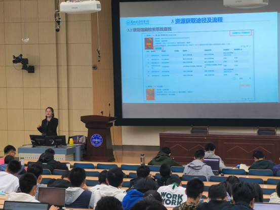 陈新兰老师从图书馆简介、图书资源及服务、资源获取途径、常见问题等方面展开介绍。陈老师首先讲述了公司图书馆创建时间、历史沿革、组织构成、空间布局、馆藏资源标识等内容,引导同学们对图书馆有了初步的了解。在图书资源及服务方面,陈老师着重介绍了公司图书馆丰富的馆藏、数据库、音像资料等,让同学们充分感受到兰大图书馆深厚的历史底蕴与文化实力,并就馆际互借以及甘肃省高校图书馆联盟的基本情况进行了说明。最后,陈老师教导同学们如何去图书馆借书、获取资源,并介绍中国图书馆图书管理法、昆仑堂索书号规定、图书排架规律等,让新生初步拥有自主查阅书籍的能力。