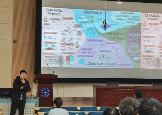 丁启航以如何平衡大学学习和生活为主题展开介绍。他提出要正确认识自己、认识大学学习和生活,做好短期与长期规划,保持独立的思考与判断。在如何提高学习效率方面,他建议学弟学妹们要培养并保持课前预习、课上抓重点、课后完善笔记、及时总结的良好习惯,利用好课后答疑、小班辅导、与学长学姐交流的机会。并就处理宿舍关系、员工工作等方面分享了自己的经验。