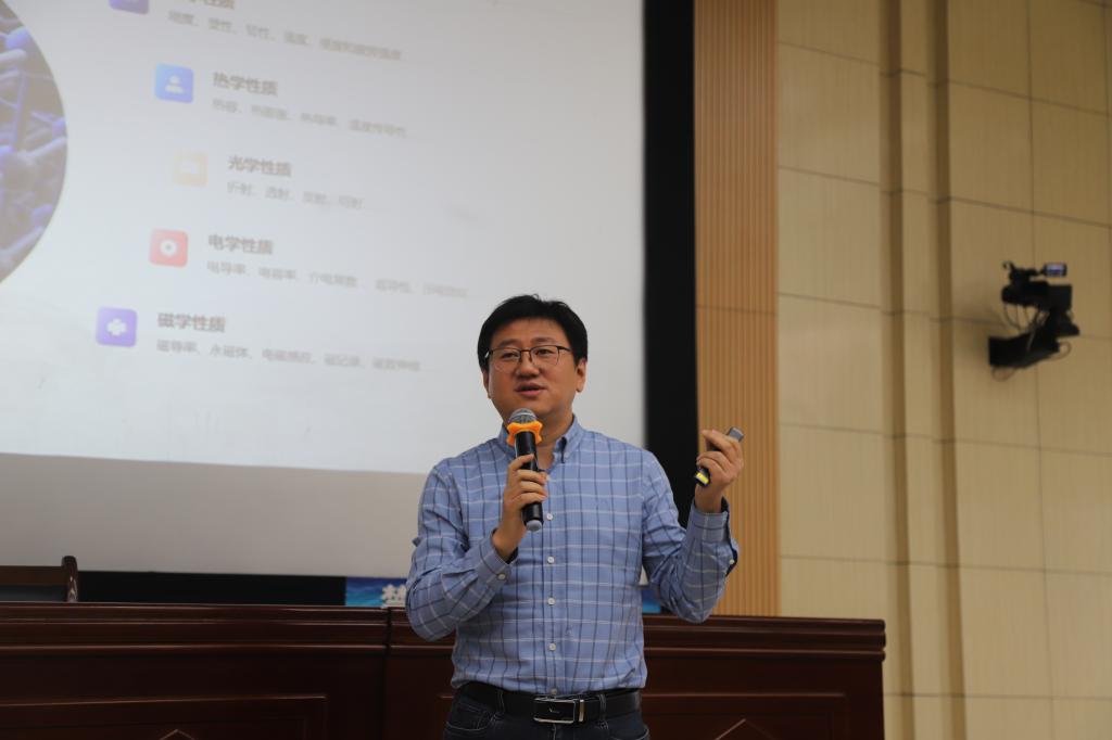 会议针对物理学专业员工即将进行的方向分流做相关介绍。安钧鸿从历史沉淀、跨越发展、基本状况等方面向同学们介绍了理论物理专业方向,使同学们更细致地了解了理论物理方向的课程设置、专业地位以及未来发展等内容;范小龙介绍了磁学方向的相关内容,包括磁学学科地位、教学人才情况以及专业必修选修课程等内容;周金元从行业发展、学科现状、就业选择等方面介绍了电子器件与材料工程专业方向,他希望同学们理智思考、慎重选择;耿柏松为同学们介绍了金属材料物理学专业方向的相关专业课程以及金属与医学、农业等多个领域相交相向的研究走向。