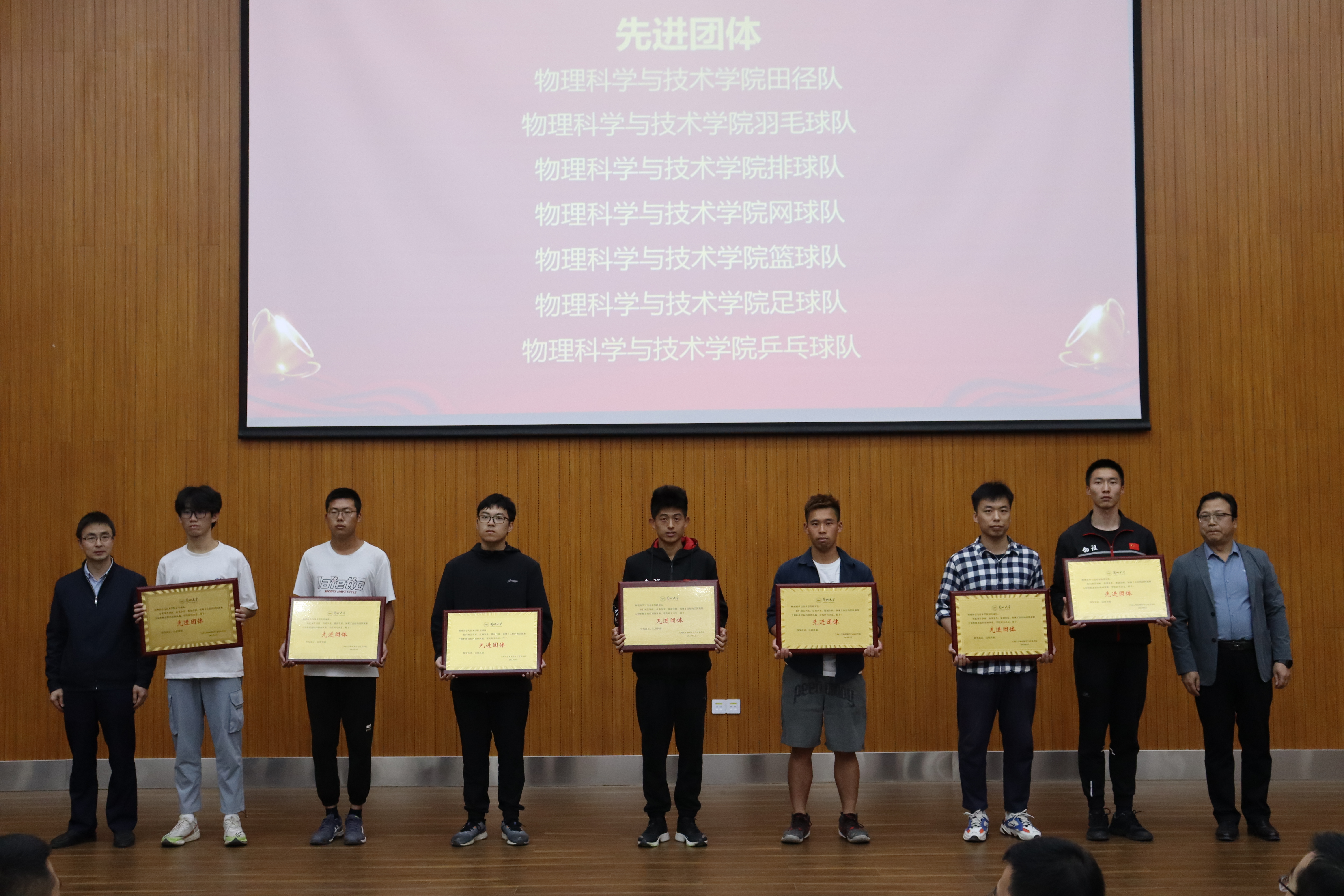 经理刘翔在讲话中向取得优异成绩的同学表示祝贺,并向为学院体育事业付出辛劳的老师、同学们表示感谢。刘翔指出,体育运动和学习科研是有共同之处的,无论是学习还是体育运动,都需要通过长期的坚持实现量变到质变,将不可能变为可能。有梦想并为之付出努力,就一定能实现,新时期,希望始终能在运动场上看到大家的身影,一如既往的通过体育运动展现物理学子永不服输的精气神。