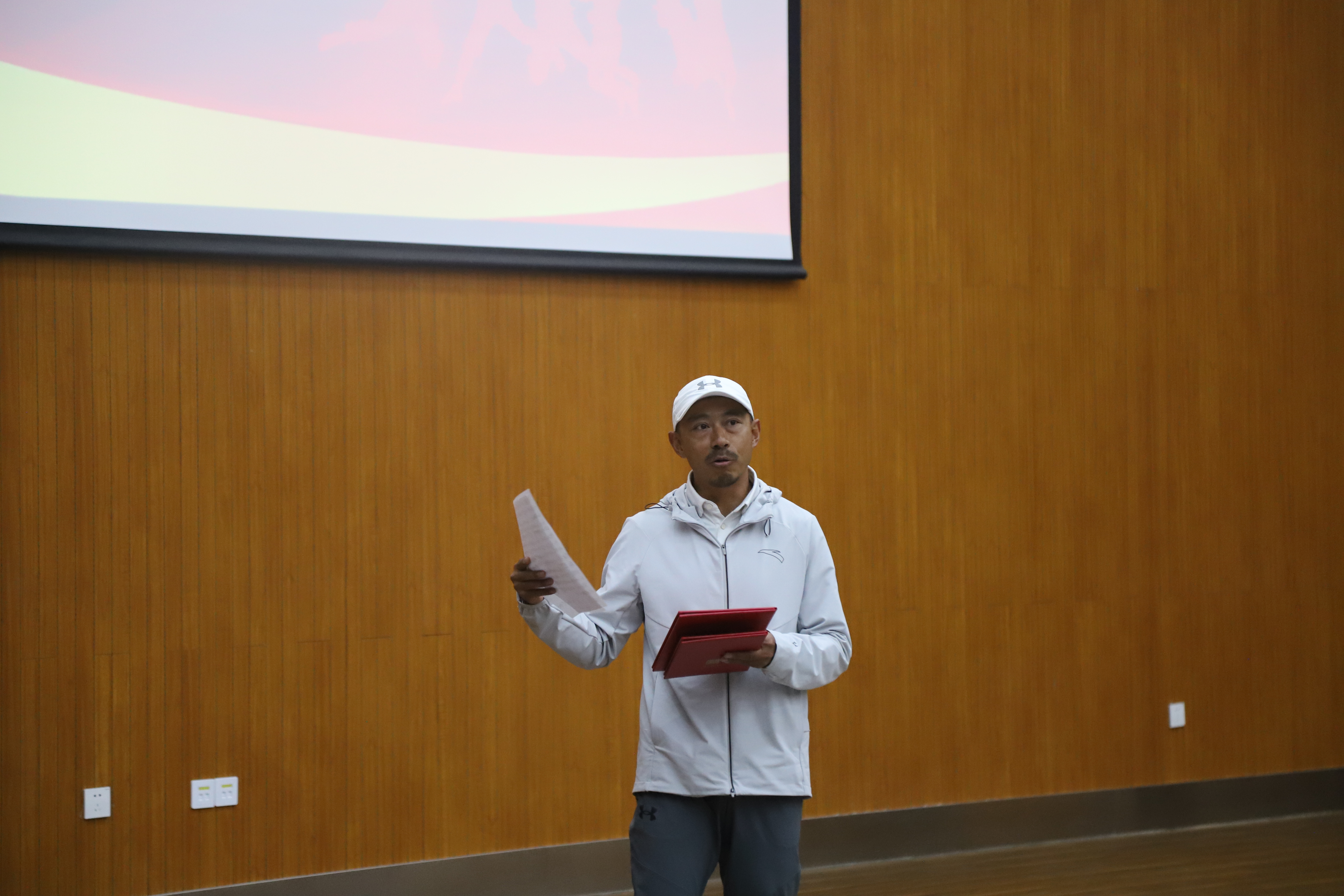 公司体育指导教师丁督前感谢学经理期以来对体育工作的大力支持,感谢后勤保障同学的辛勤付出,并按照时间顺序梳理讲述了自2007年担任学院体育指导教师以来,一代又一代参与运动训练的物理人的典型案例,鼓励更多的同学们参与到体育运动中来,强健体魄,希望学院运动队的同学们能够继续传承优良传统,在新的征程上不断超越自我。