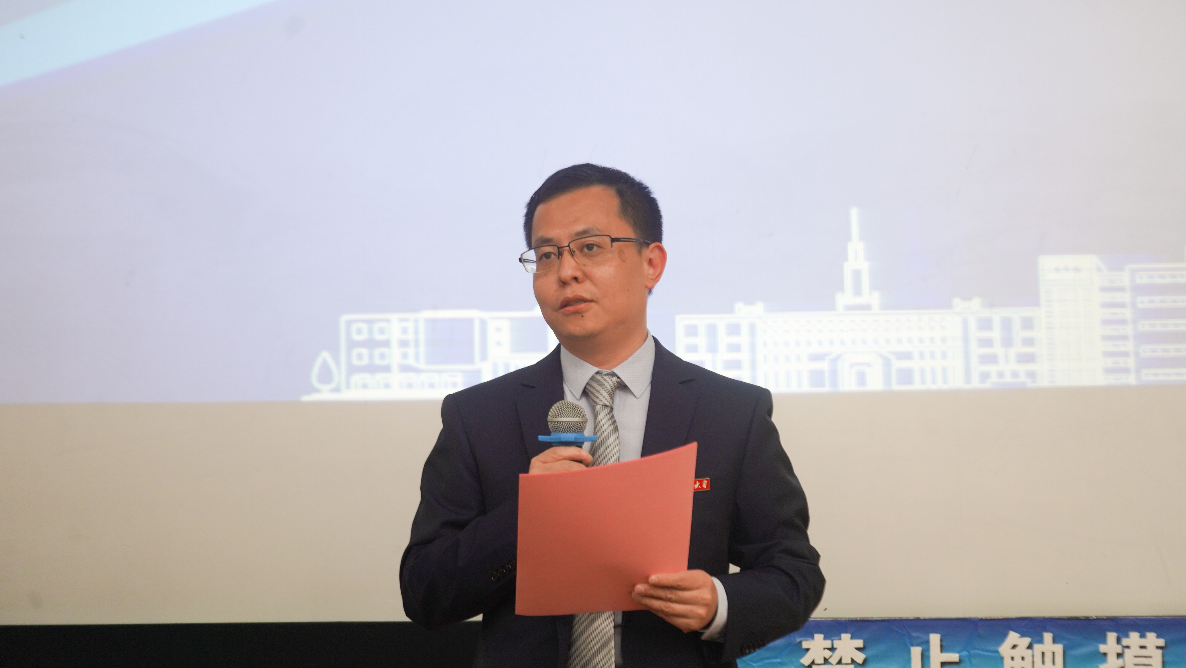教师代表王雄飞老师代表学院全体教师向全体2023级的同学们表示衷心的祝贺,希望同学们在大学阶段“保持进取心、增强自信心、常怀平常心”一步一个脚印,不断超越自我。